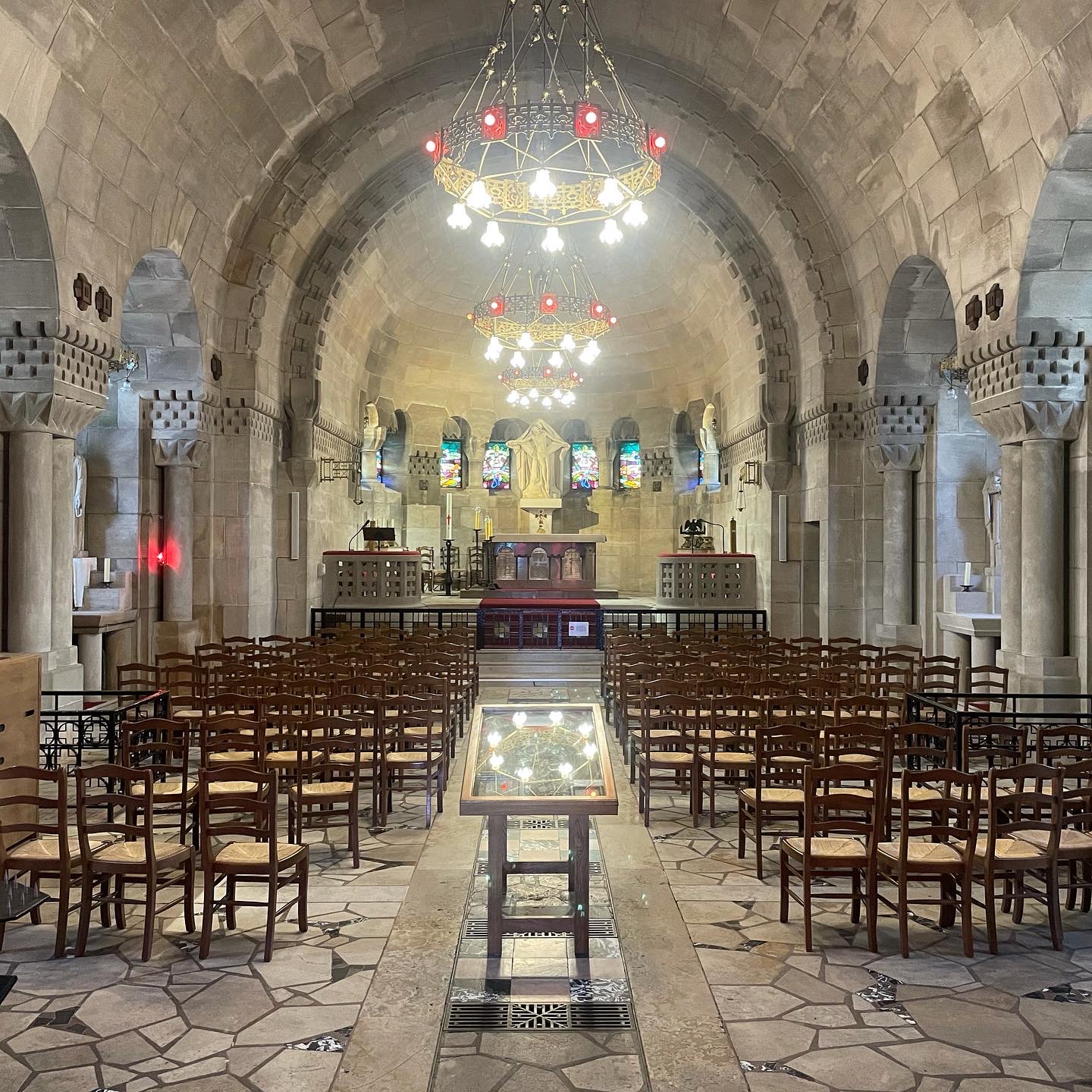 🔎Au centre de l’allée menant au coeur de la Chapelle, repose paisiblement sous verre une chasuble de couleur dorée à l’histoire chevaleresque.